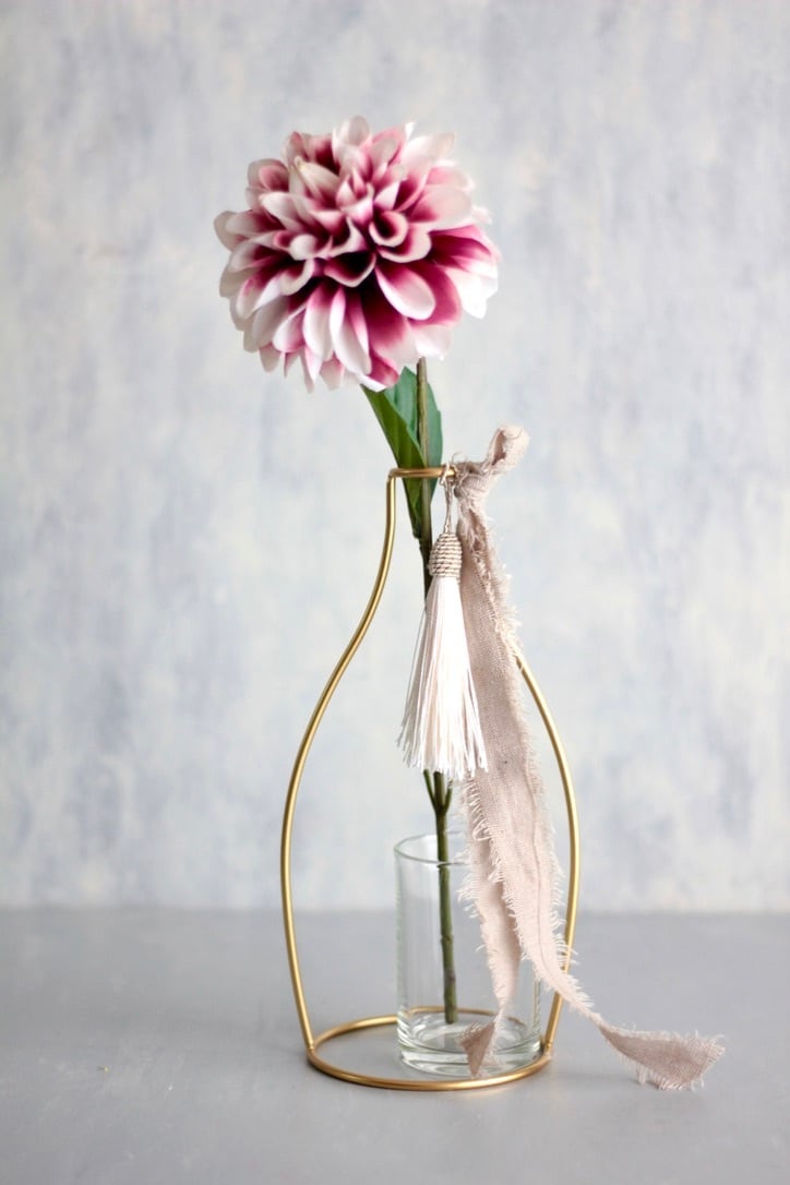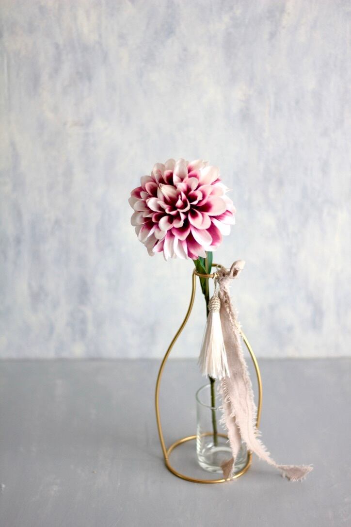 ミセルデコオリジナルのゴールドのワイヤーフレームが描く幾何学ラインの中に、透明感あるガラスカップと季節の造花をセット。