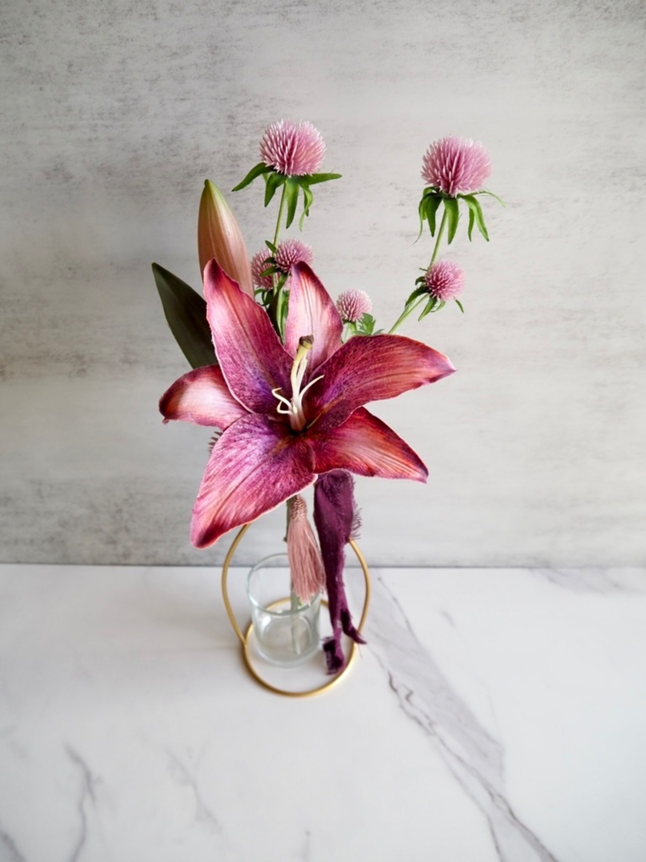 【レッドカサブランカ・ピンクアザミ】|アーティフィシャルフラワー 花瓶アレンジ| 秋|ギフト・インテリア雑貨