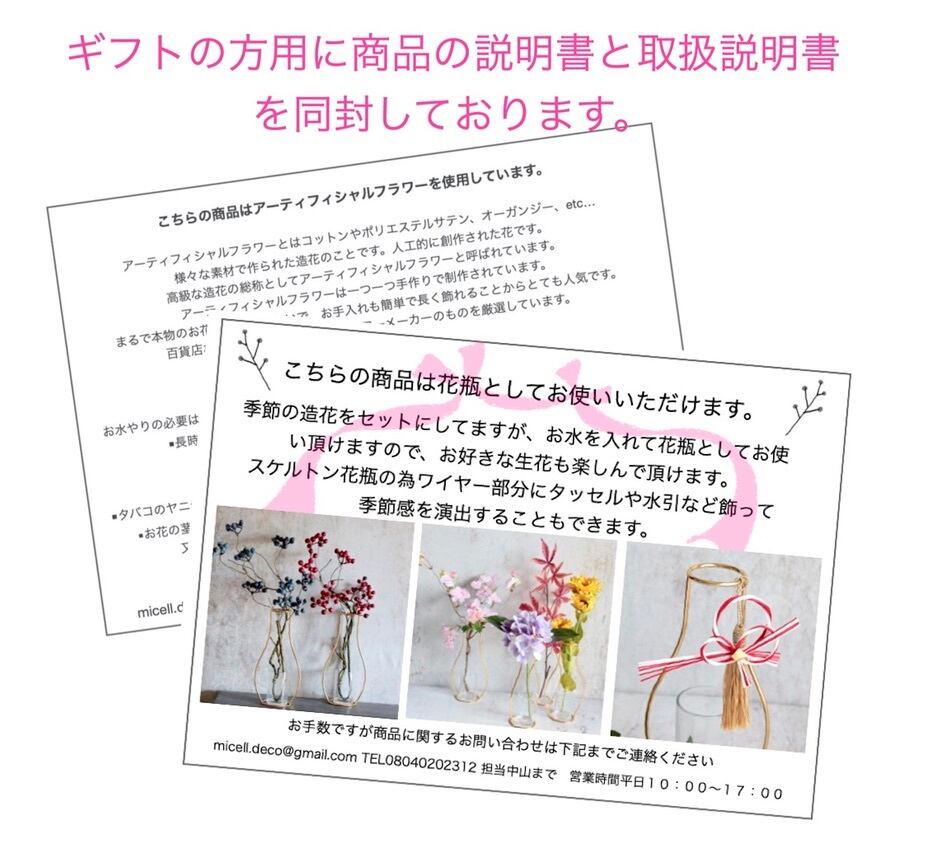 ※ 花の茎は配送時に軽く曲げてお届けしてます。到着後、お好みの形に整えてセットしてください。