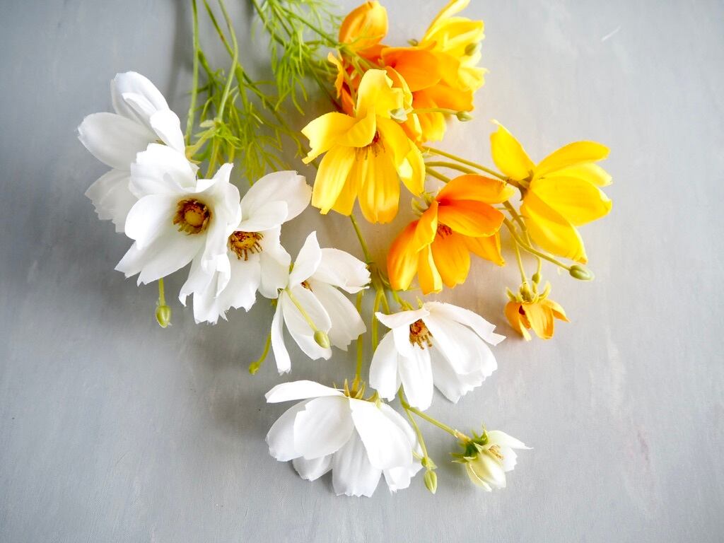 【イエローコスモス・ホワイトコスモス】|アーティフィシャルフラワー 花瓶アレンジ| 秋|ギフト・インテリア雑貨