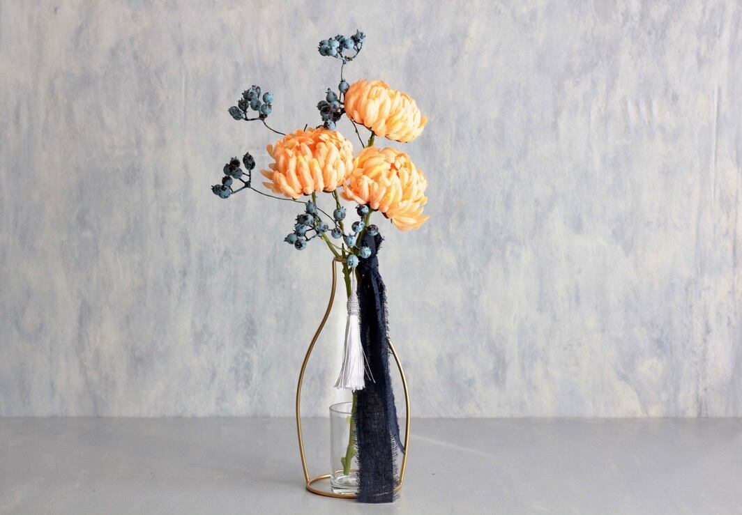 【和ギクオレンジ・ブルーベリー】|アーティフィシャルフラワー 花瓶アレンジ| 冬|ギフト・インテリア雑貨