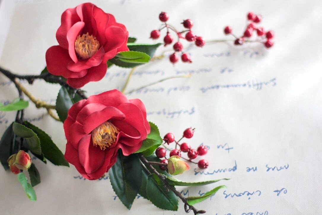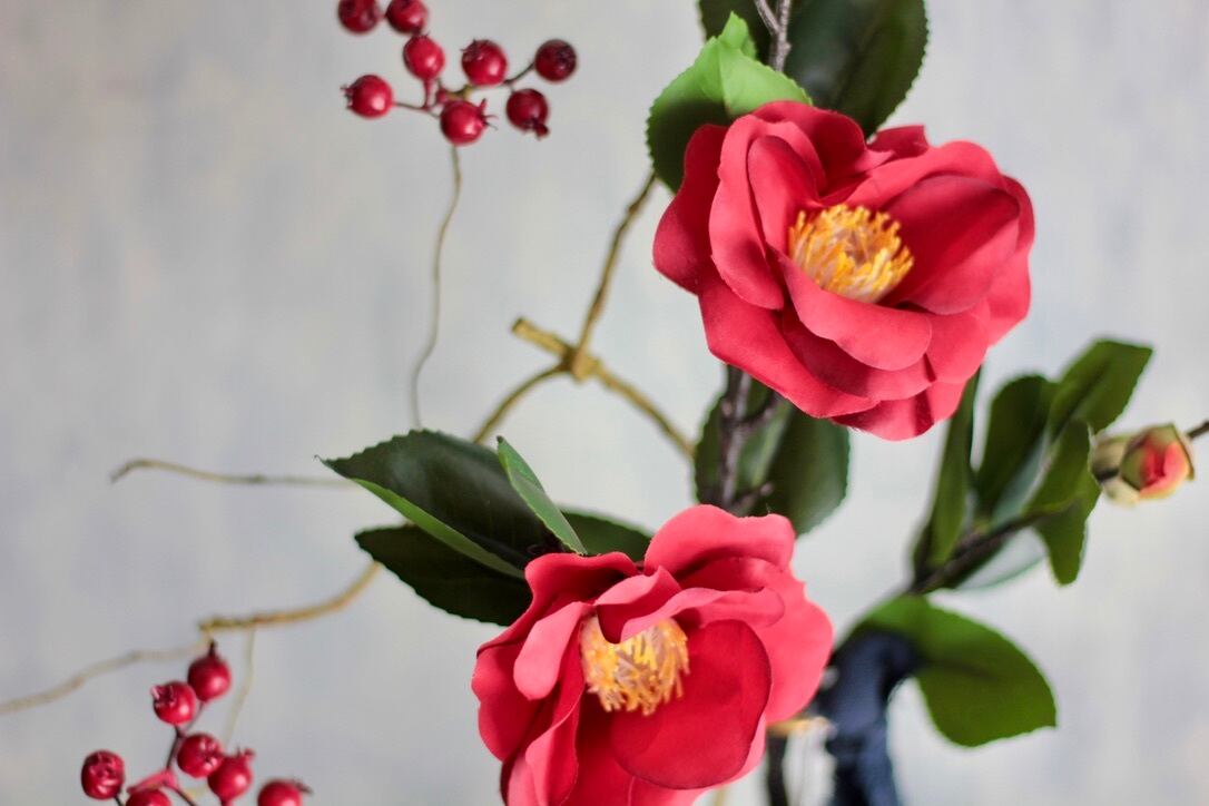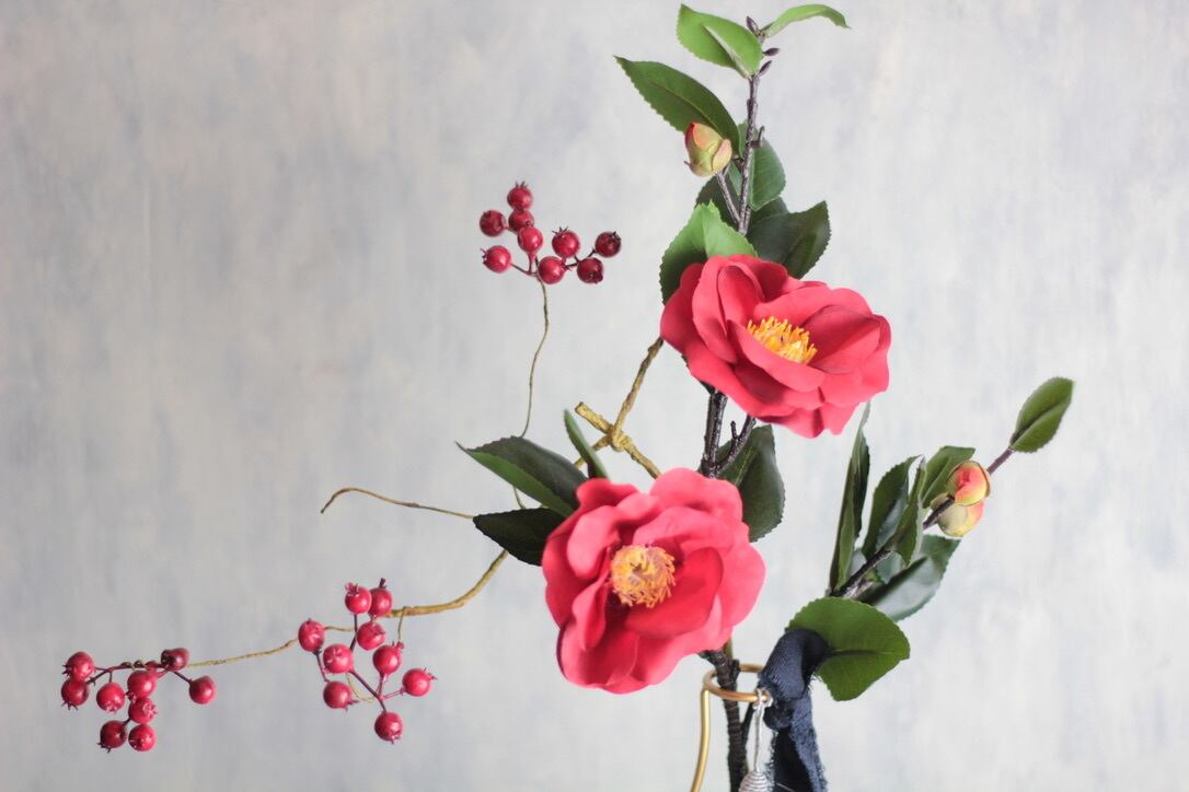 【赤椿・レッドベリー】|アーティフィシャルフラワー 花瓶アレンジ| 冬|ギフト・インテリア雑貨
