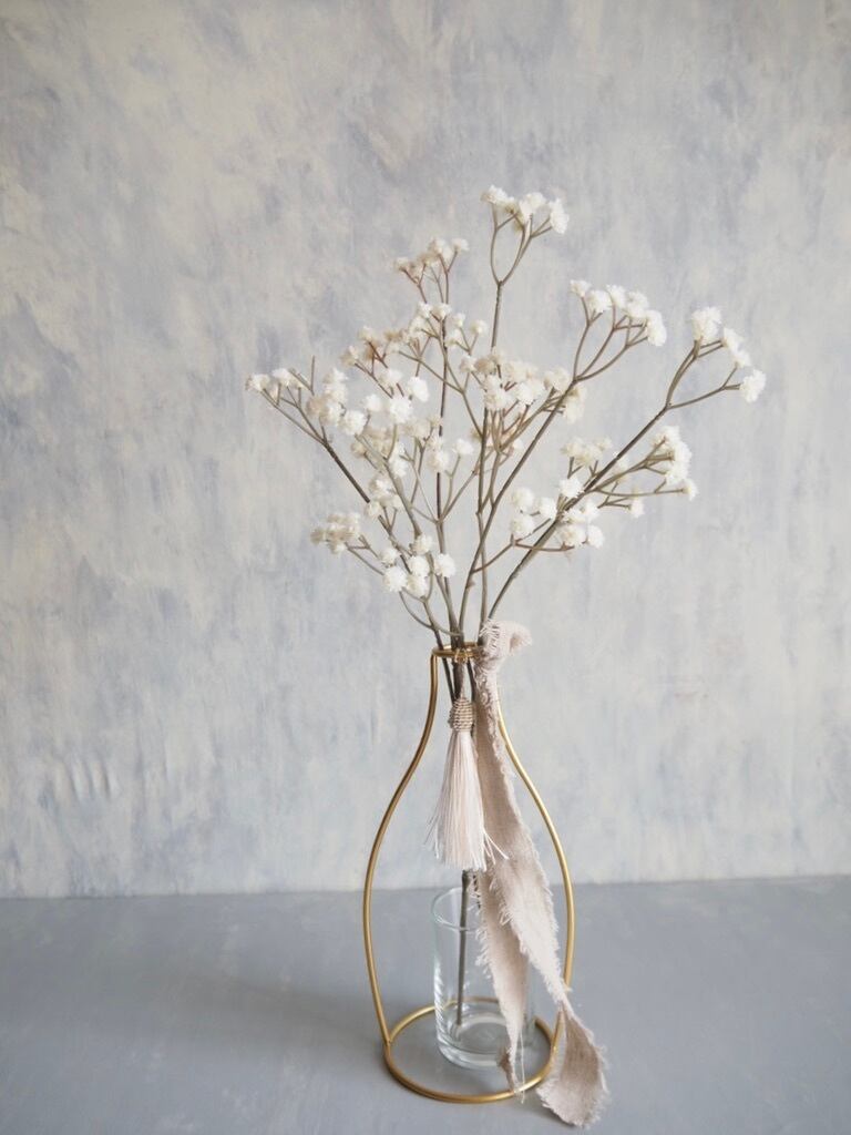 ミセルデコオリジナルのゴールドのワイヤーフレームが描く幾何学ラインの中に、透明感あるガラスカップと季節の造花をセット。